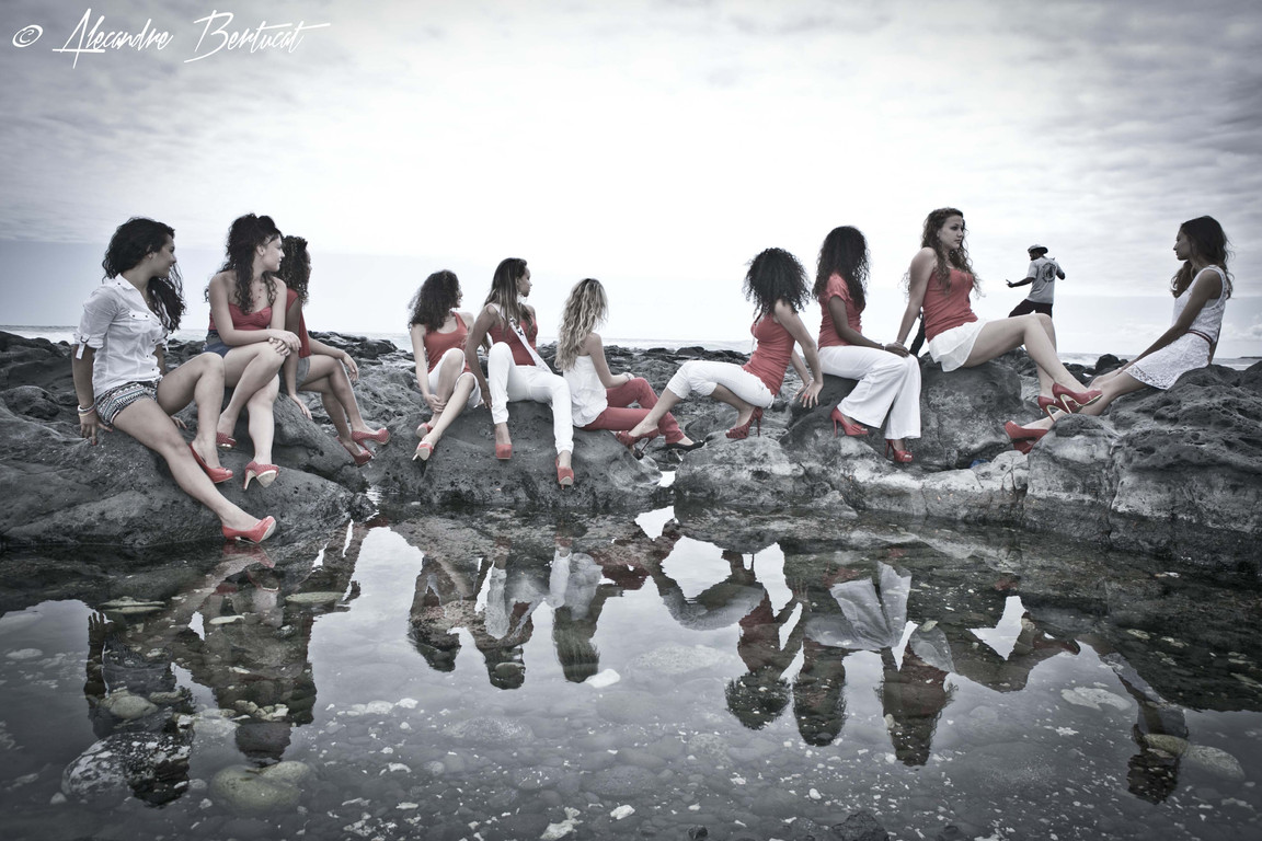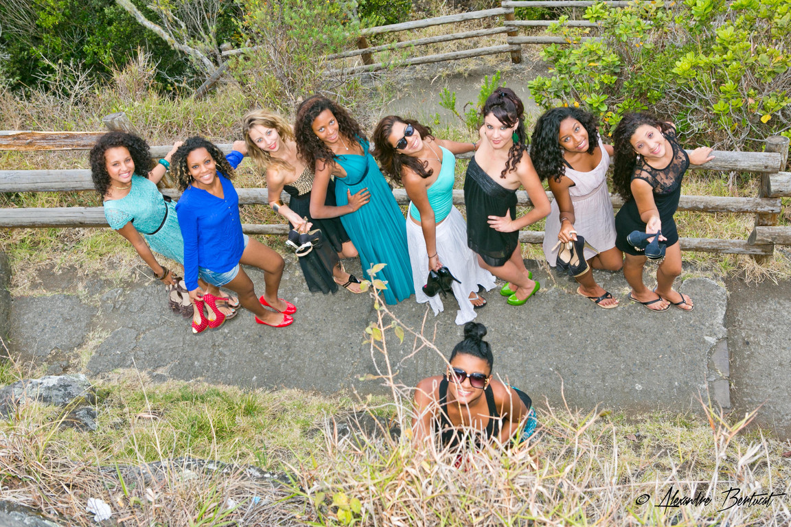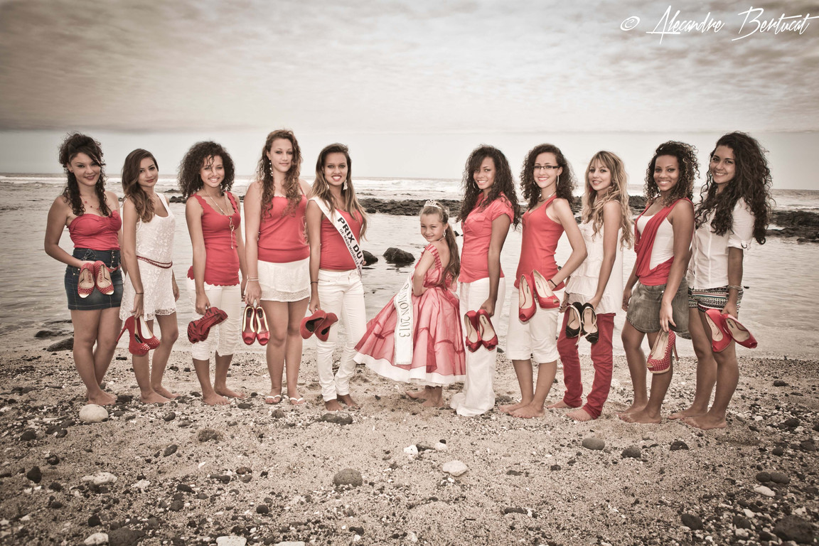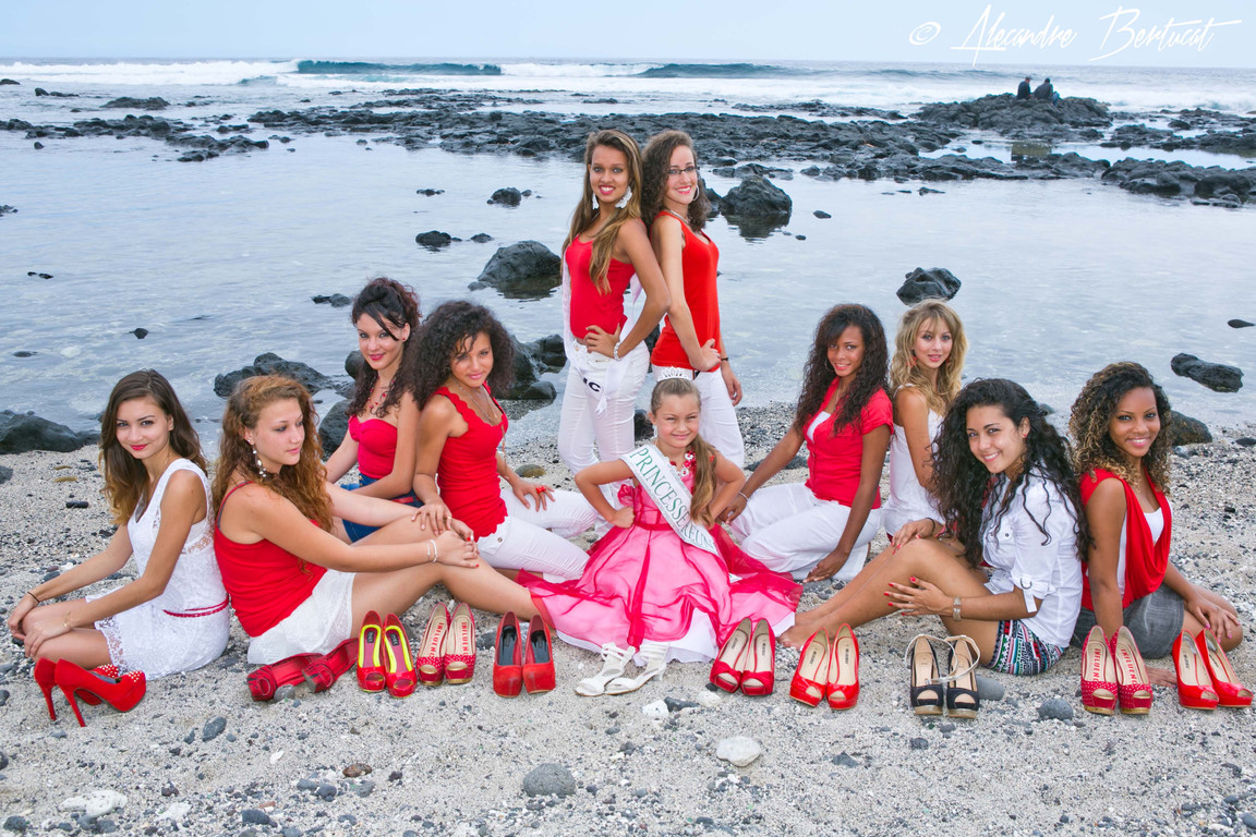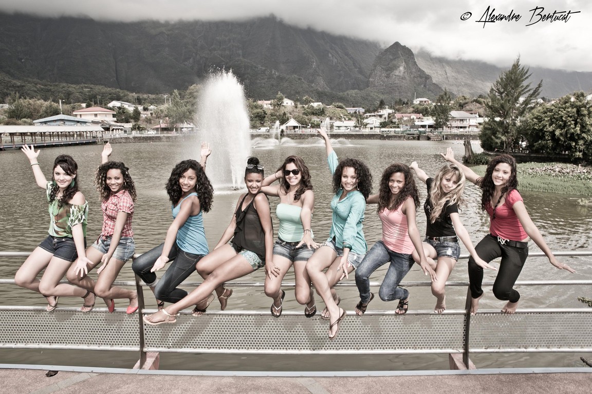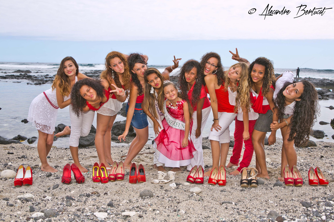 Les 6 titrées de Mademoiselle Réunion et le Président